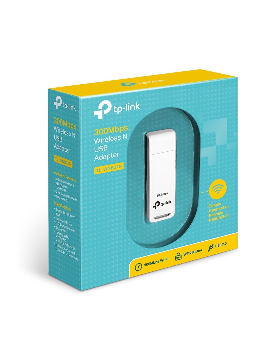 TP-Link TL-WN821N. Tecnología de conectividad: Inalámbrico, Interfaz de host: USB, Interfaz: WLAN. Rango máximo de transferencia de datos: 300 Mbit/s, Estándar Wi-Fi: Wi-Fi 4 (802.11n), Banda Wi-Fi: Banda única (2,4 GHz). USB con suministro de corriente. Color del producto: Negro, Blanco