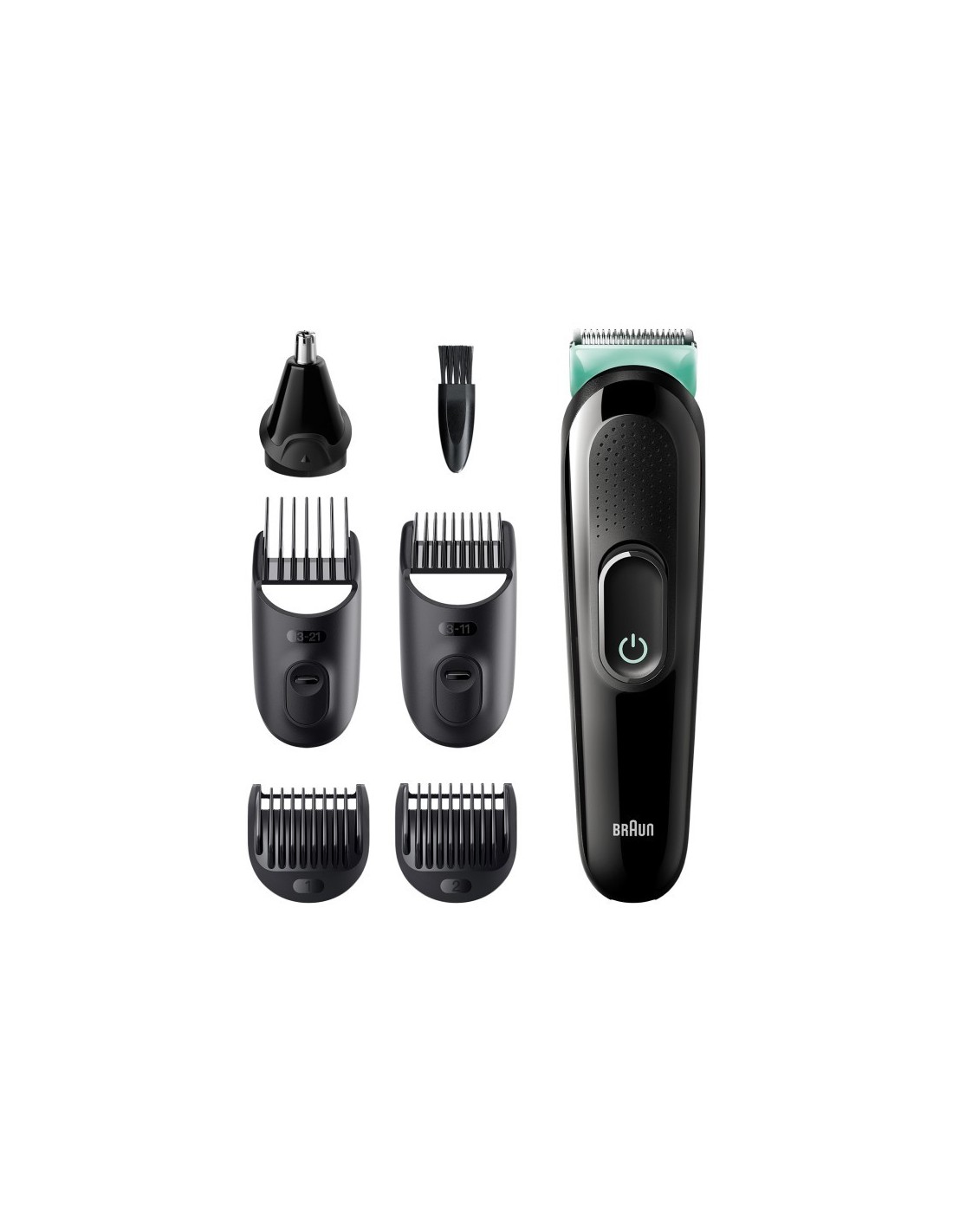 Braun MGK3321. Longitud mínima del cabello: 0,5 mm, Longitud máxima del cabello: 2,1 cm, Estilos de corte: Perilla, Barba larga, Bigote, Barba corta. Color del producto: Negro, Verde. Fuente de energía: Batería, Tiempo de funcionamiento: 50 min, Tipo de batería: Batería integrada. Tipo de embalaje: Caja