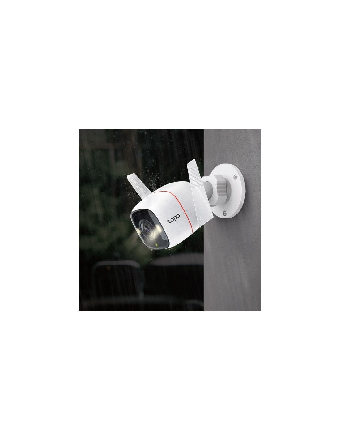 TP-Link Tapo C320WS. Tipo: Cámara de seguridad IP, Colocación soportada: Interior y exterior, Tecnología de conectividad: Inalámbrico. Tipo de montaje: Pared, Color del producto: Blanco, Factor de forma: Bala (forma). Tamaño del sensor óptico: 25,4 / 3 mm (1 / 3"). Distancia focal fija: 3,18 mm. Distancia de visión nocturna: 30 m, Tipo de LED: IR, Longitud de onda infraroja: 850 nm