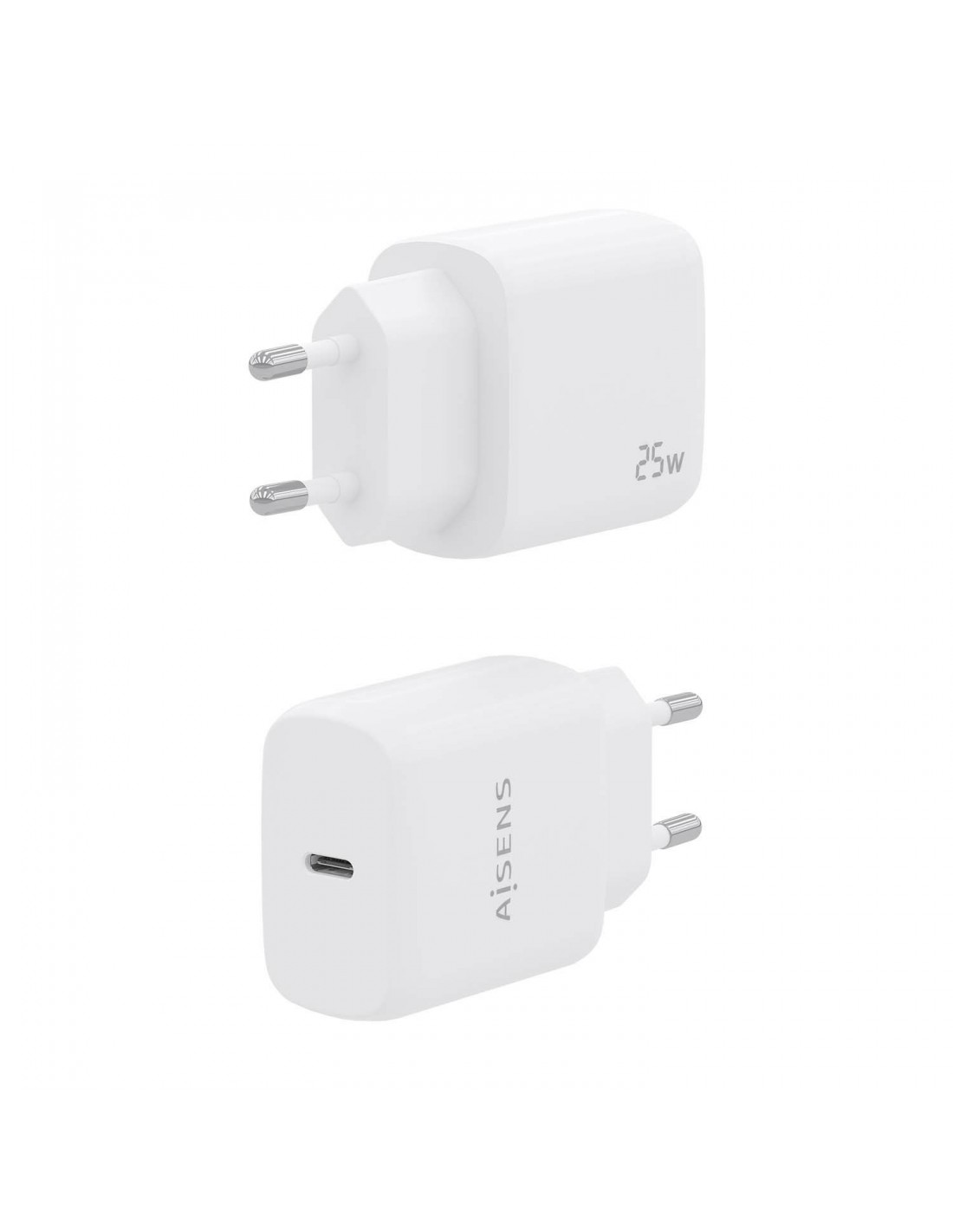 AISENS Cargador USB-C PD3.0 1 Puerto 1xUSB-C 25W, Blanco, Interior, Corriente alterna, 12,19 V, Blanco