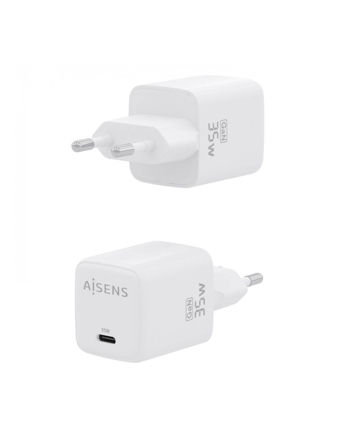 AISENS Cargador GaN 35W, 1xUSB-C PD3.0 QC4.0, Blanco, Interior, Corriente alterna, 20 V, Blanco