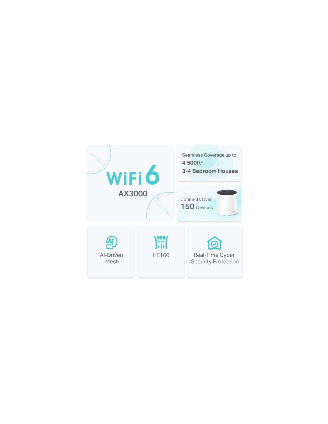 TP-Link AX3000, Blanco, Interno, Enrutador de malla, Doble banda (2,4 GHz / 5 GHz), Wi-Fi 6 (802.11ax), 802.11a, 802.11b, 802.11g, Wi-Fi 4 (802.11n), Wi-Fi 5 (802.11ac), Wi-Fi 6 (802.11ax)