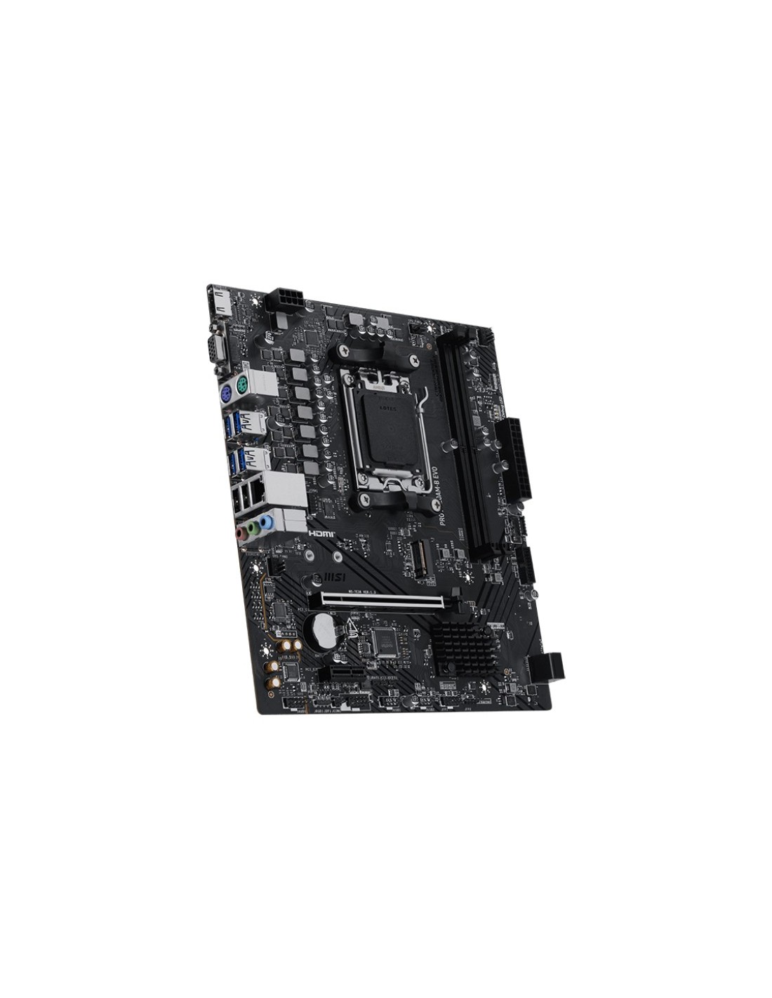 MSI PRO A620AM-B EVO. Fabricante de procesador: AMD, Socket de procesador: Zócalo AM5, Procesador compatible: AMD Ryzen 7000 Series, AMD Ryzen 8000 Series, AMD Ryzen 9000 Series. tipos de memoria compatibles: DDR5-SDRAM, Memoria interna máxima: 128 GB, Tipo de ranuras de memoria: DIMM. Interfaces de disco de almacenamiento soportados: M.2, SATA III, Niveles RAID: 0, 1, 10. Tipo de interfaz ethernet: 5 Gigabit Ethernet. Componente para: PC, Factor de forma: ATX, Familia del chipset: AMD
