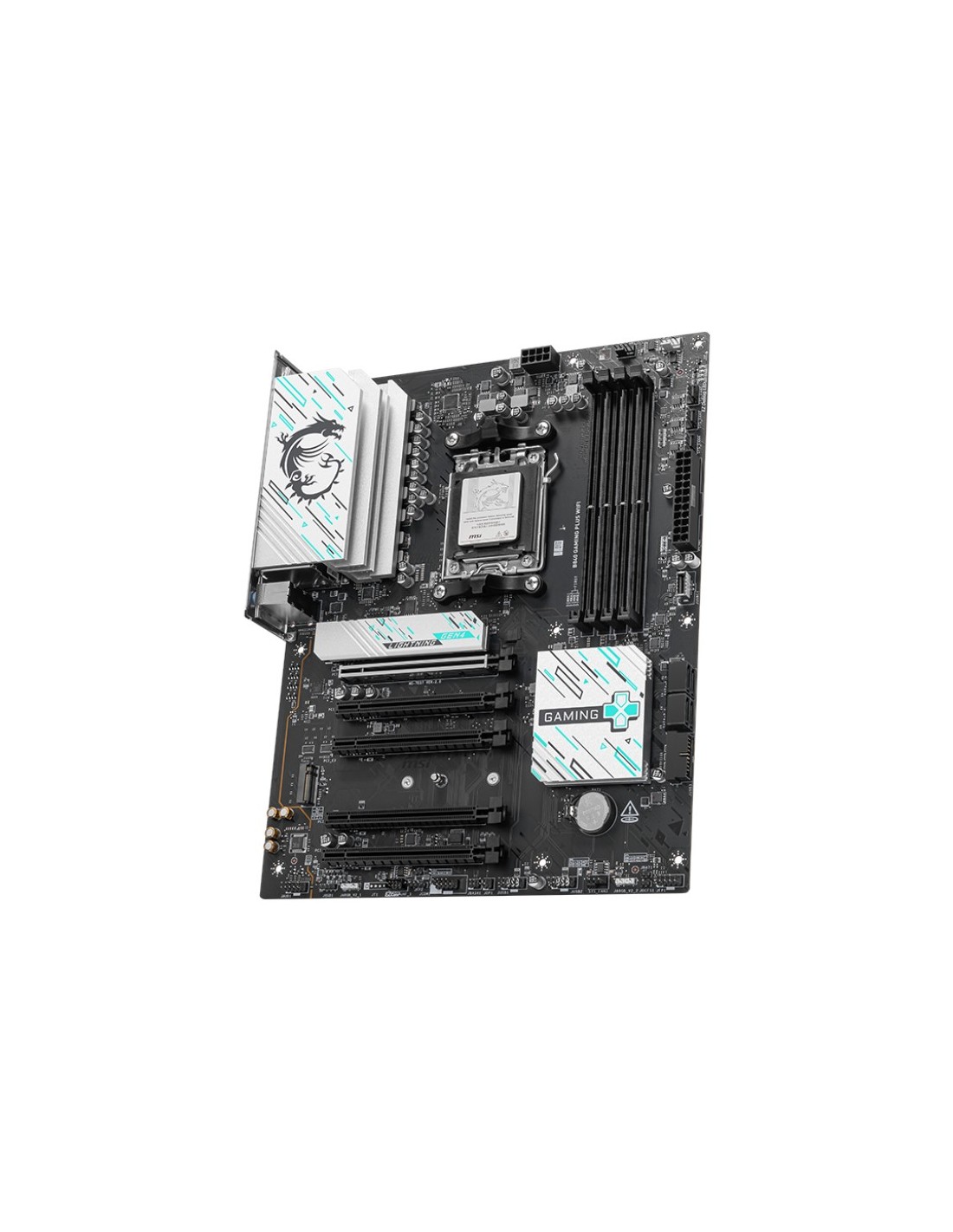 MSI B840 GAMING PLUS WIFI. Fabricante de procesador: AMD, Socket de procesador: Zócalo AM5, Procesador compatible: AMD Ryzen 7000 Series, AMD Ryzen 8000 Series, AMD Ryzen 9000 Series. tipos de memoria compatibles: DDR5-SDRAM, Memoria interna máxima: 256 GB, Tipo de ranuras de memoria: DIMM. Interfaces de disco de almacenamiento soportados: M.2, Micro SATA III, Tipos de unidades de almacenamiento admitidas: HDD & SSD, Niveles RAID: 0, 1, 10. Tipo de interfaz ethernet: 2.5 Gigabit Ethernet, Estándar Wi-Fi: Wi-Fi 7 (802.11be),Wi-Fi estándares: 802.11a, 802.11b, 802.11g, Wi-Fi 4 (802.11n),Wi-Fi 5 (802.11ac),Wi-Fi 6 (802.11ax),Wi-Fi 6E.... Componente para: PC, Factor de forma: ATX, Familia del chipset: AMD