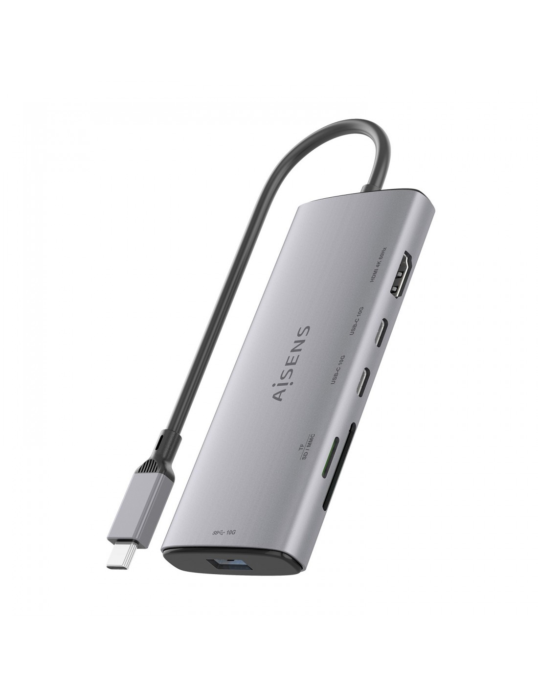 AISENS USB-C Dock 6 en 1, USB-C a 1xHDMI, 1xUSB-A 10G, 2xUSB-C 10G, 1xSD, 1xMicroSD, Gris, 20cm, Alámbrico, USB 3.2 Gen 1 (3.1 Gen 1) Type-C, Gris, MMC, MicroSDHC, MicroSDXC, RS-MMC, SD, SDHC, SDXC, 10 Gbit/s, 4K Ultra HD