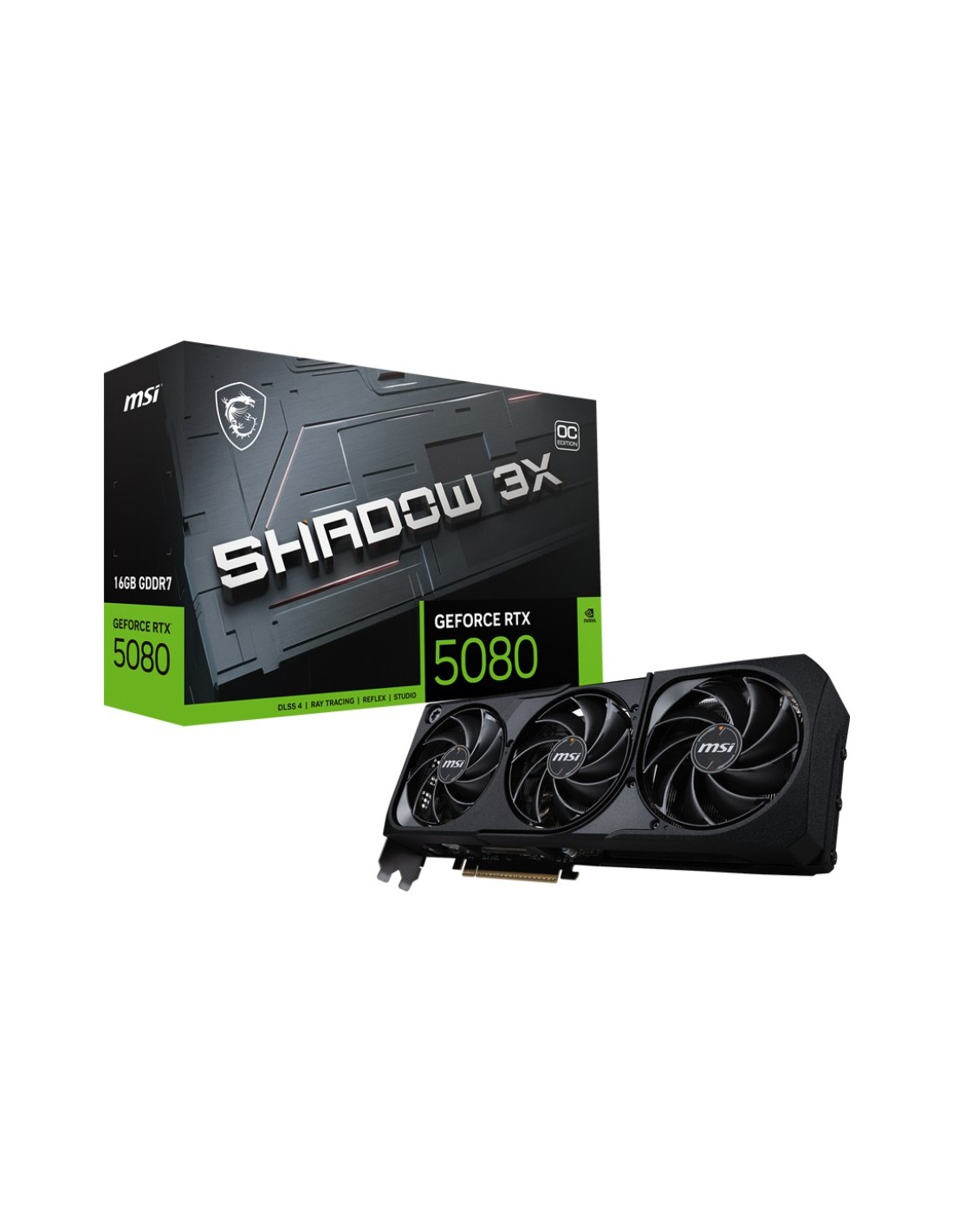 MSI GEFORCE RTX 5080 16G SHADOW 3X OC, GeForce RTX 5080, 16 GB, GDDR7, 256 bit, 7680 x 4320 Pixeles, PCI Express x16 5.0
