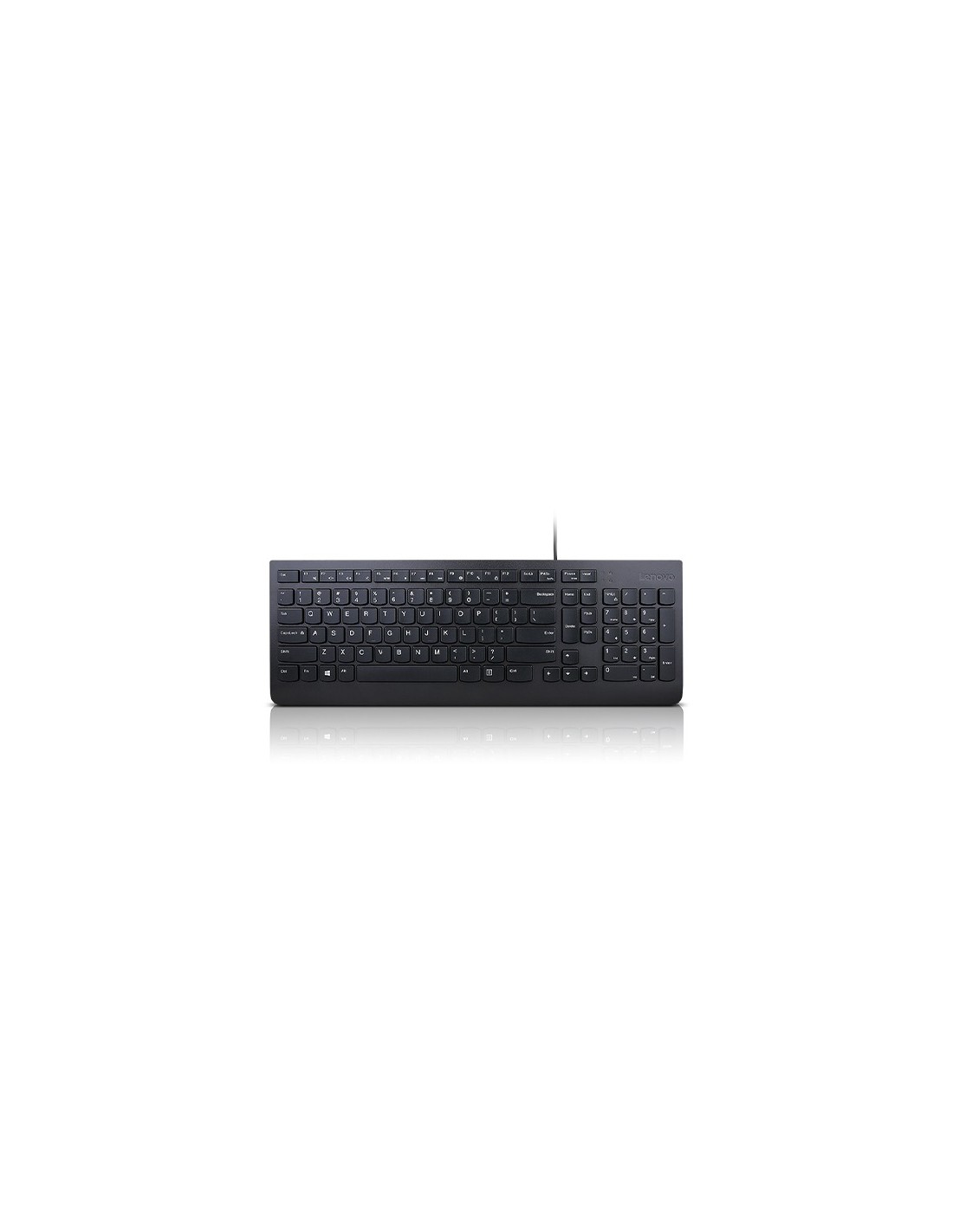 Lenovo Essential. Formato del teclado: Completo (100%). Estilo de teclado: Derecho. Tecnología de conectividad: Alámbrico, Interfaz del dispositivo: USB, Interruptor del teclado: Interruptor de membrana, Diseño de teclado: QWERTY. Longitud de cable: 1,8 m. Uso recomendado: Universal. Color del producto: Negro